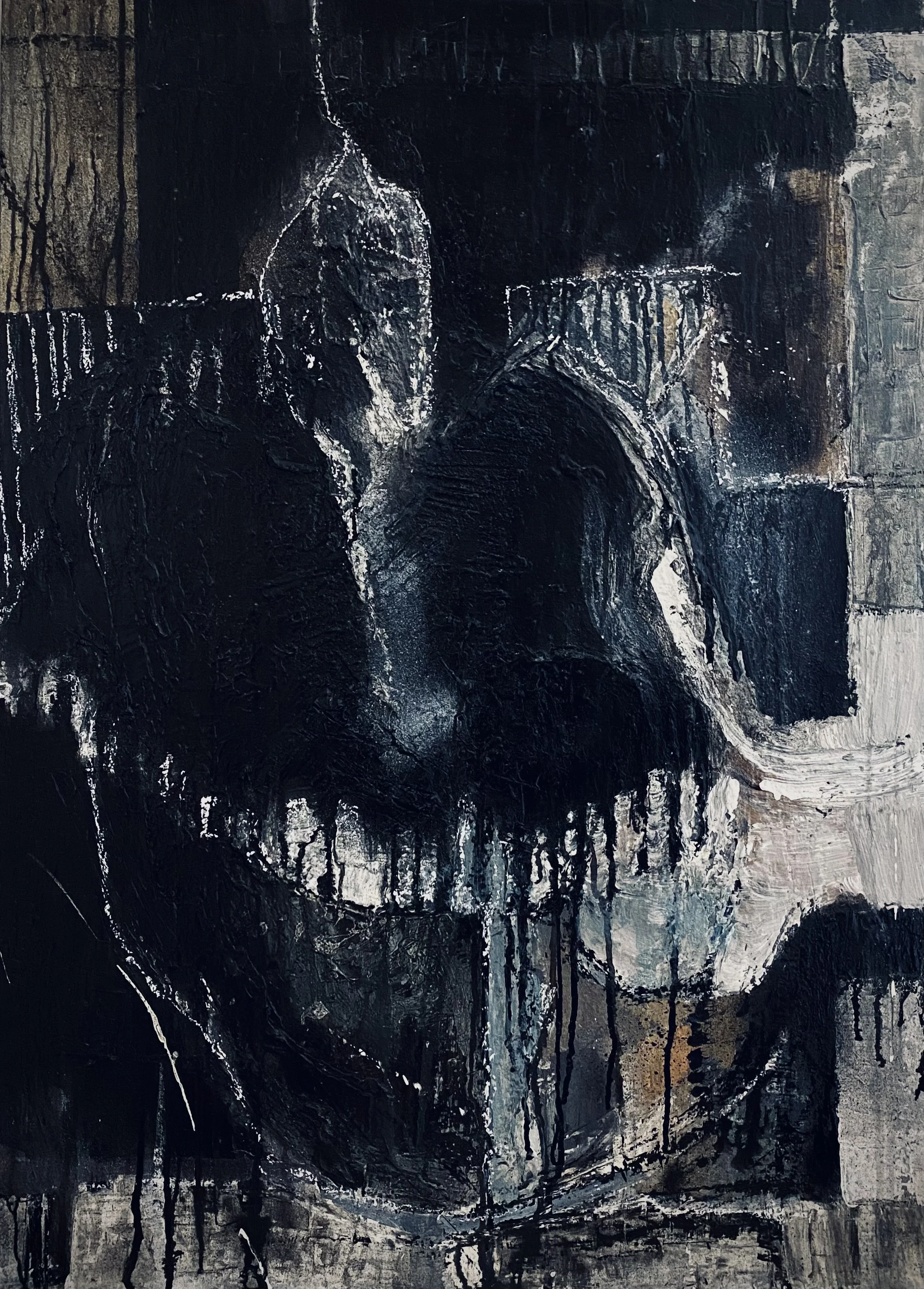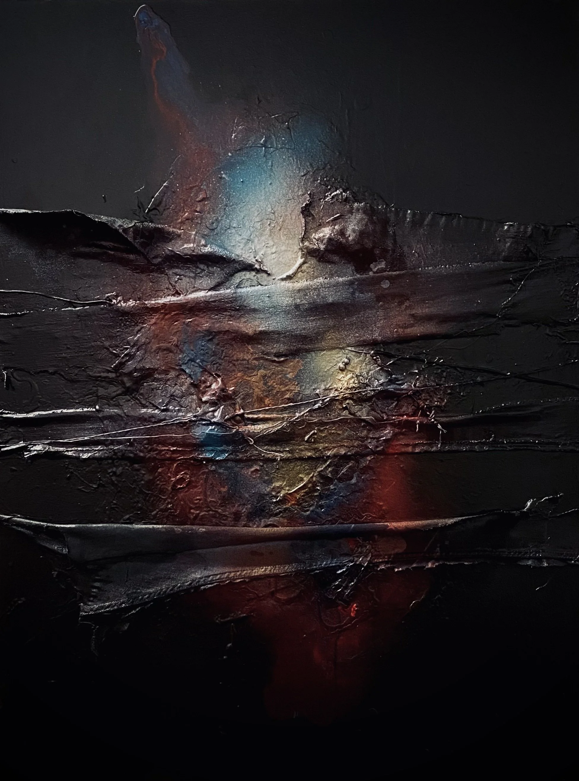 "Algorythm & Blues" / acrylic paint, house paint, paint stick, and joint compound on canvas / 48 x 36 in. / 2024
